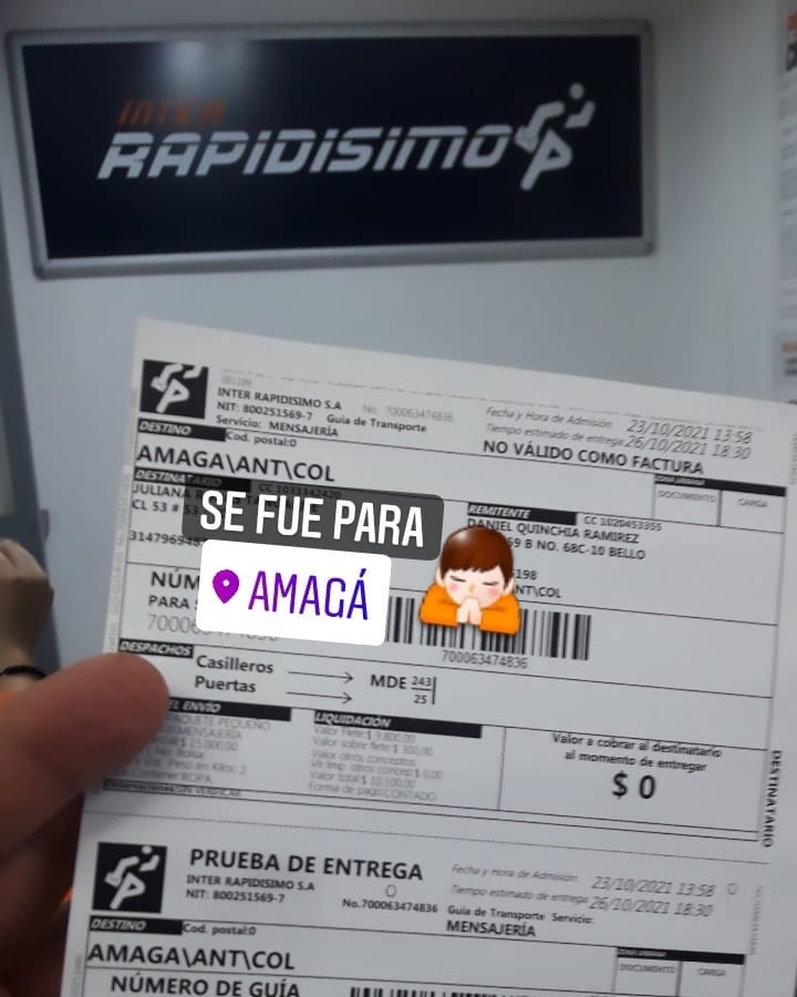 – Si vives en la ciudad de Medellín o en algún otro municipio del área metropolitana, tu pedido se entregaría el mismo día (esto solo si confirmas el pago en antes del mediodía, de lo contrario se entregaría al otro día en horas de la mañana).